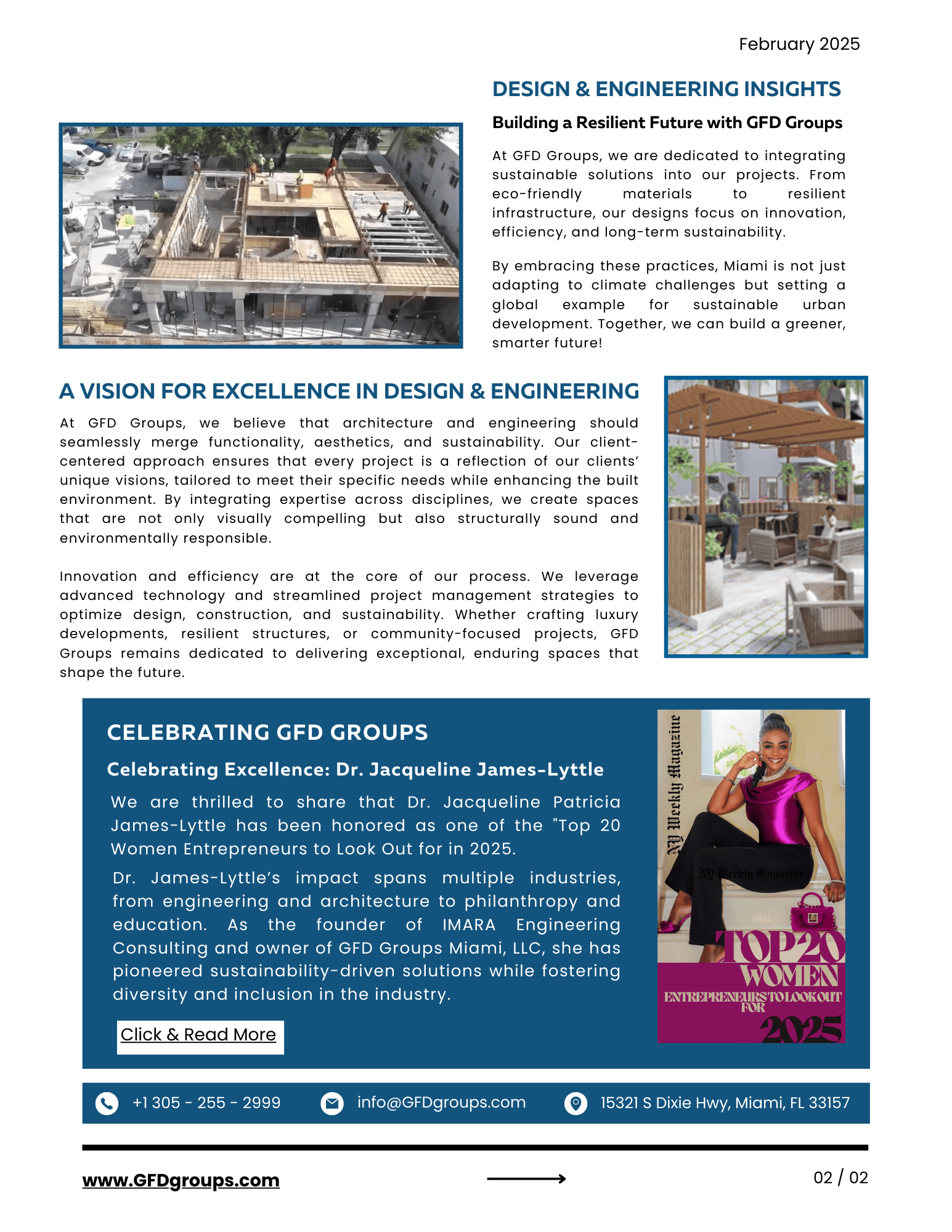 Recognized as a trailblazer by the Miami Commission on the Status of Women (2011), one of Miami-Dade’s 25 Most Influential Black Women in Business (2014), and a Humanitarian by DDEA (2017), Dr. James-Lyttle is also active in ASCE, NSBE, ASHRAE, SWE, and AEI. She lives in Miami with her husband, Soca artist Kevin Lyttle, and their son.